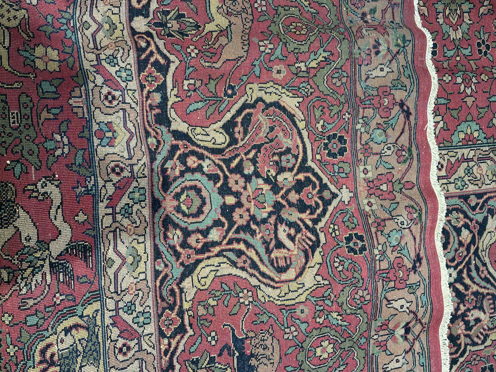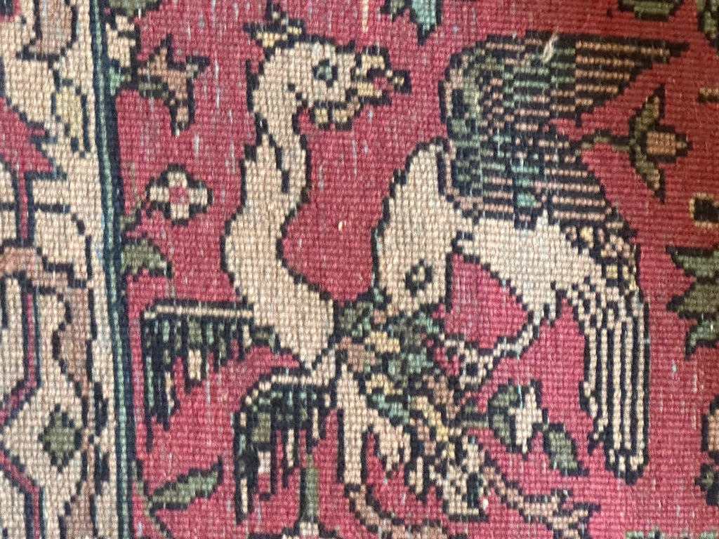 Farahan antique 20x14 Pomegranate silk and wool rust color late 1800s. Exceptional Medalions and border design .